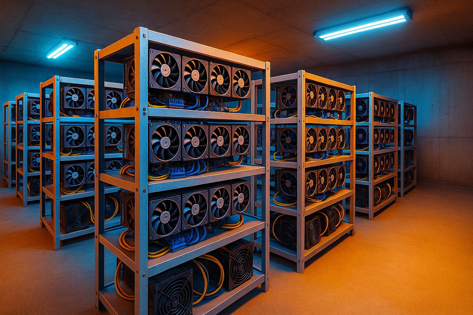 Майнинг фермасы – тәулік бойы жұмыс істеп, күрделі есептерді шығару арқылы криптовалюта өндіретін компьютерлер орналасқан орын. Бұл құрылғылар электр энергиясының көп мөлшерін қажет етеді, сондықтан бір майнинг фермасы мыңдаған отбасының айлық жарық шығынымен тең қуат жұмсай алады.