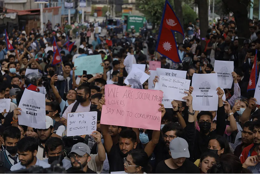 Олар «Әлеуметтік желіні жаппа, жемқорлықты жап» деген жалаумен ел астанасы Катманду көшелерінде митинг бастады.